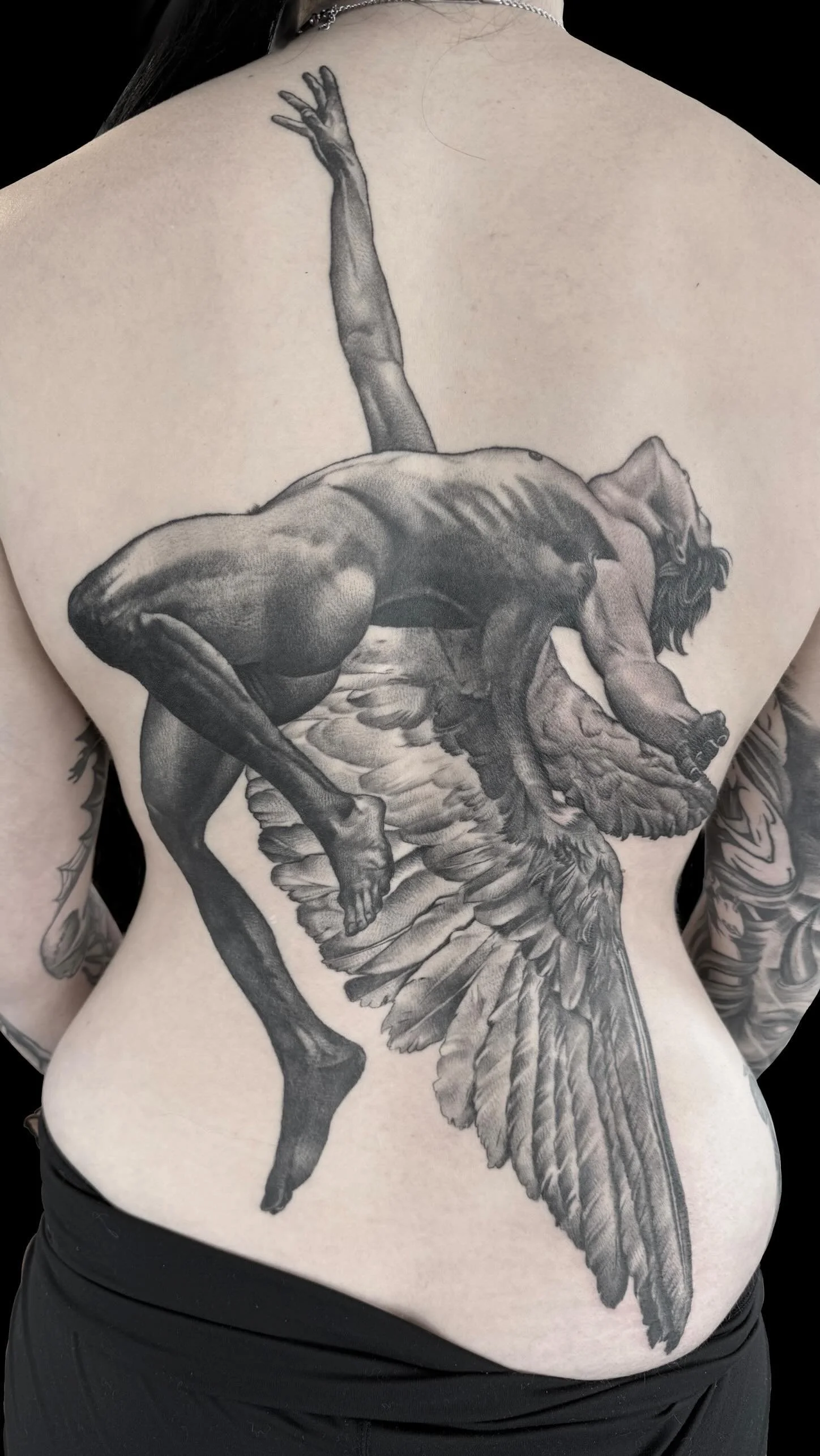 “The fall of Icarus” completed in June 2025 on @rach_tabasco Now now booking appointments in PVD @the_torchbearer 2026